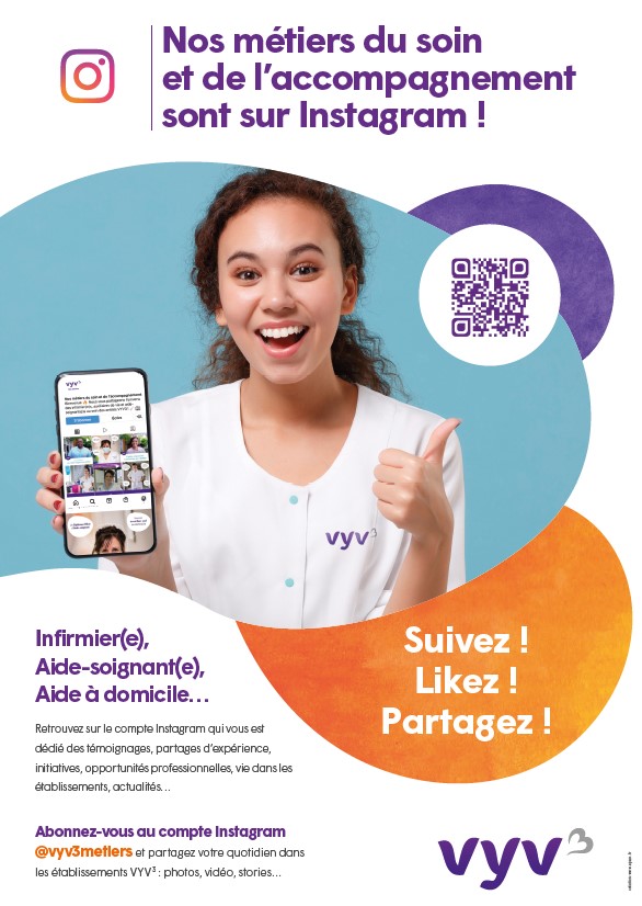C’est dans le cadre du projet « attractivité et fidélisation des professionnels de santé » qui vise à apporter une réponse aux forts besoins en recrutement des Unions VYV3 qu’a été lancé le compte Instagram @vyv3metiers.